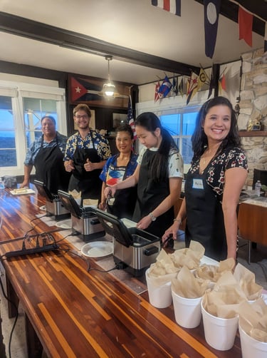 Cooking classes take place at various Bay Area locations and can be at your preferred location. Classes are self contained and mobile. With venues at local Yacht Clubs, Roof Top Communities and the Filipino Community Center.